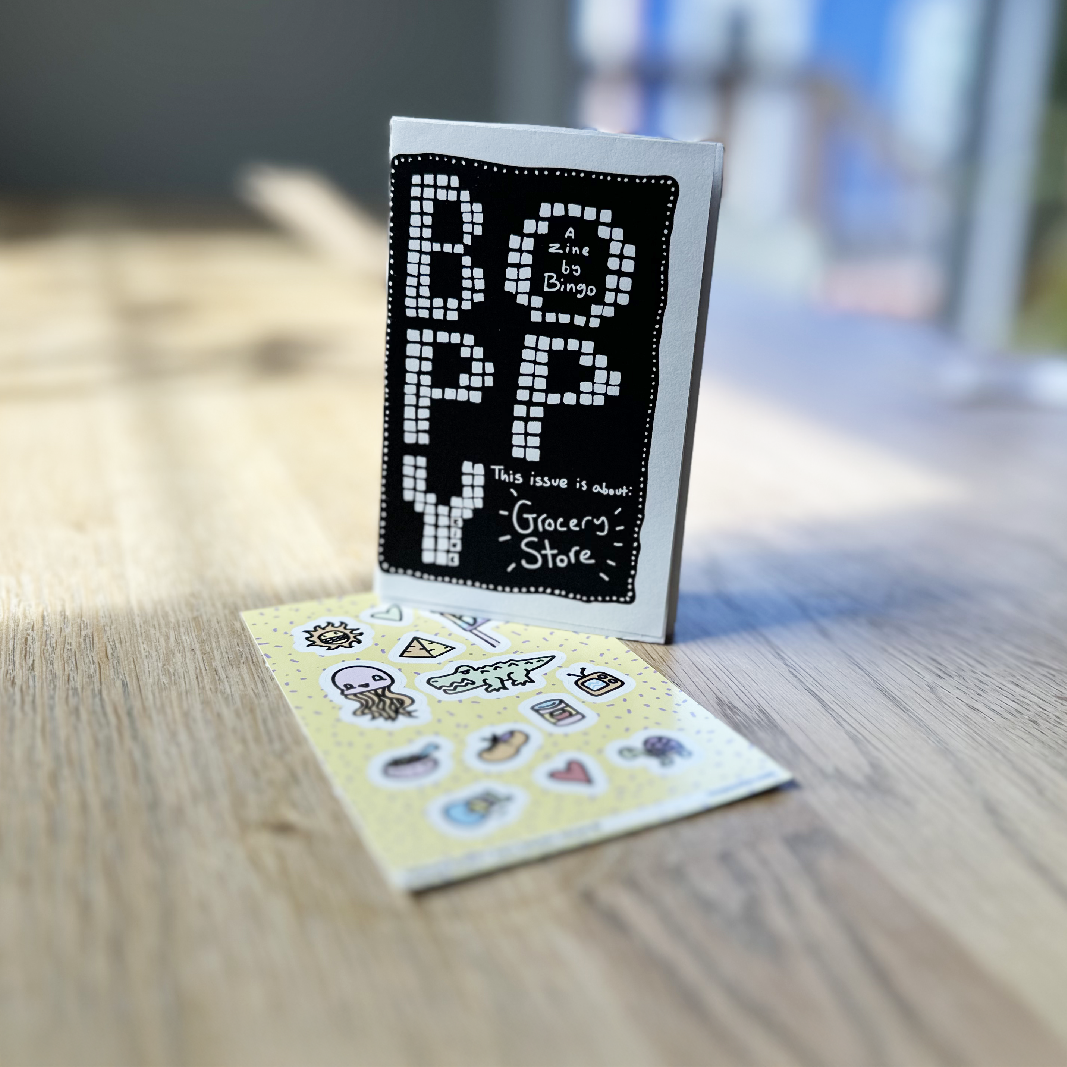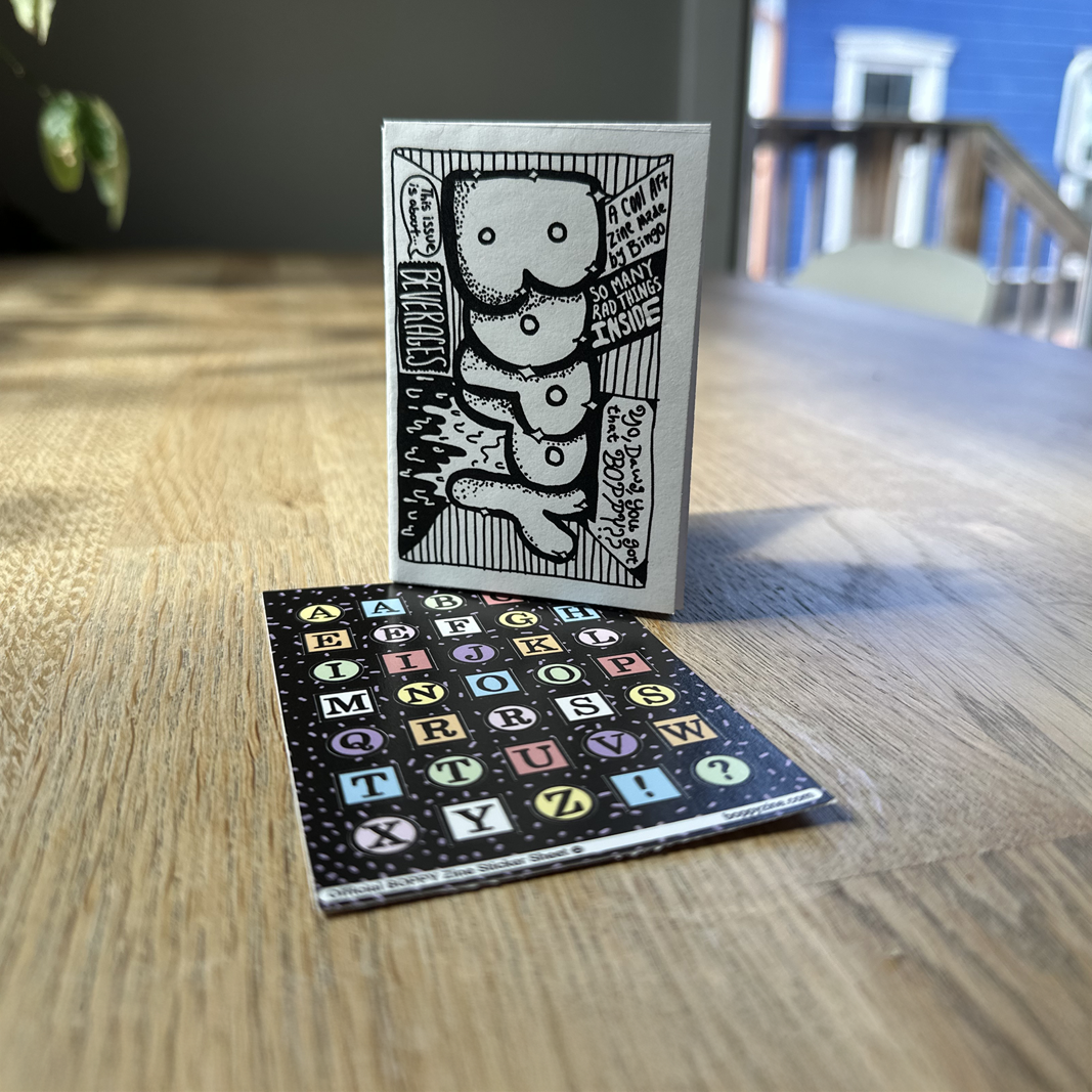 🏄‍♀️ BOPPY is a single-sheet, single-color, 8-page zine. Pretty tame, never lame! 🏄‍♀️